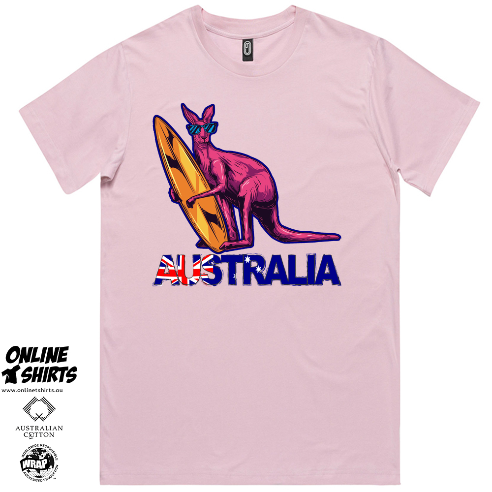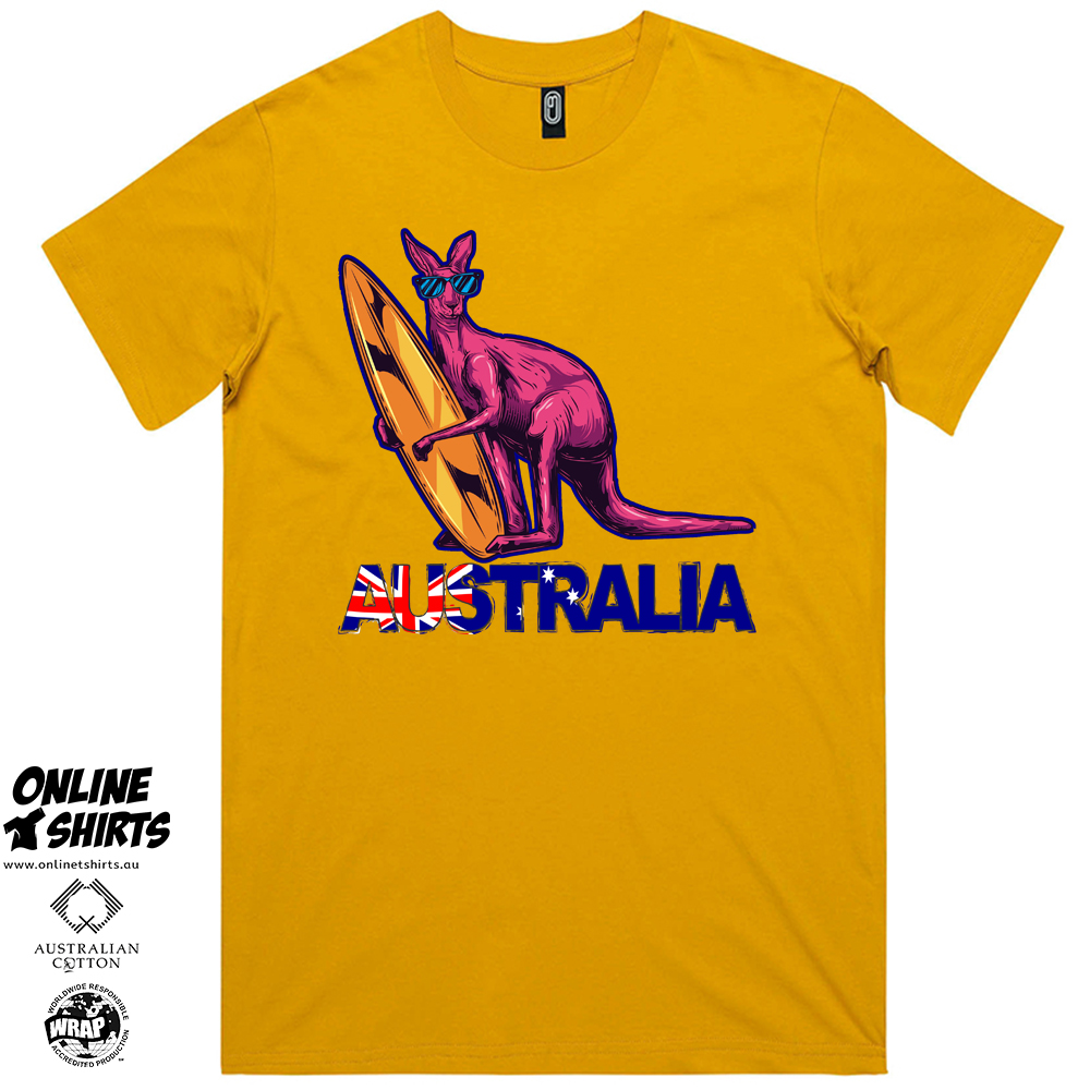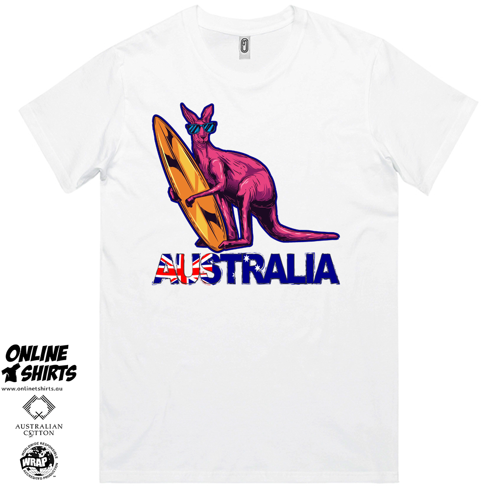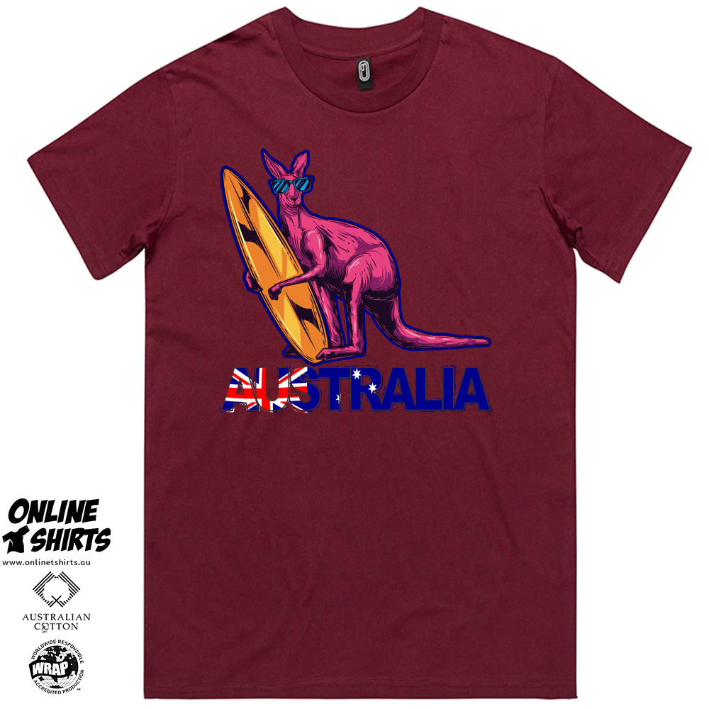 The Australia Surfing Kangaroo T Shirt is a Premium Quality Fashion T Shirt produced using Australian Cotton