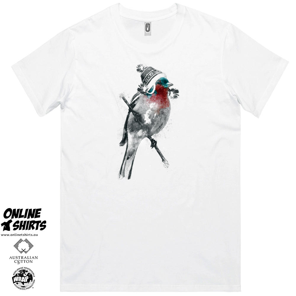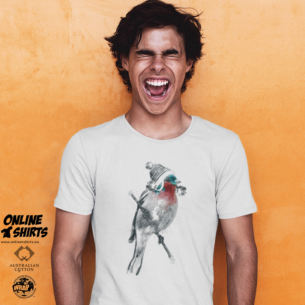 The Watercolor Sparrow Bird Winter Hat T Shirt is a Premium Quality Fashion T Shirt produced using Australian Cotton